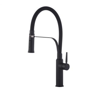 Смеситель черный с черным упругим изливом в комплекте